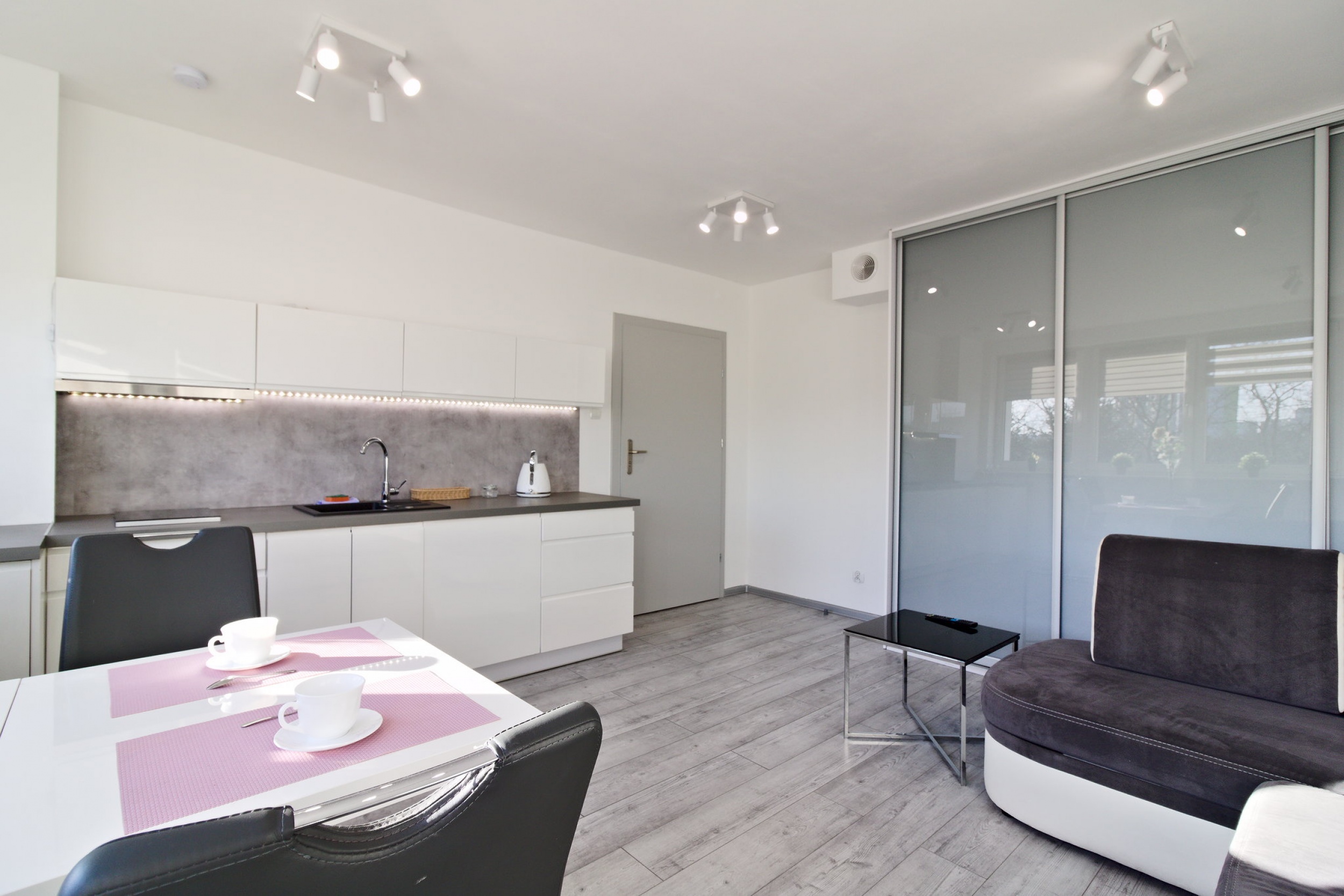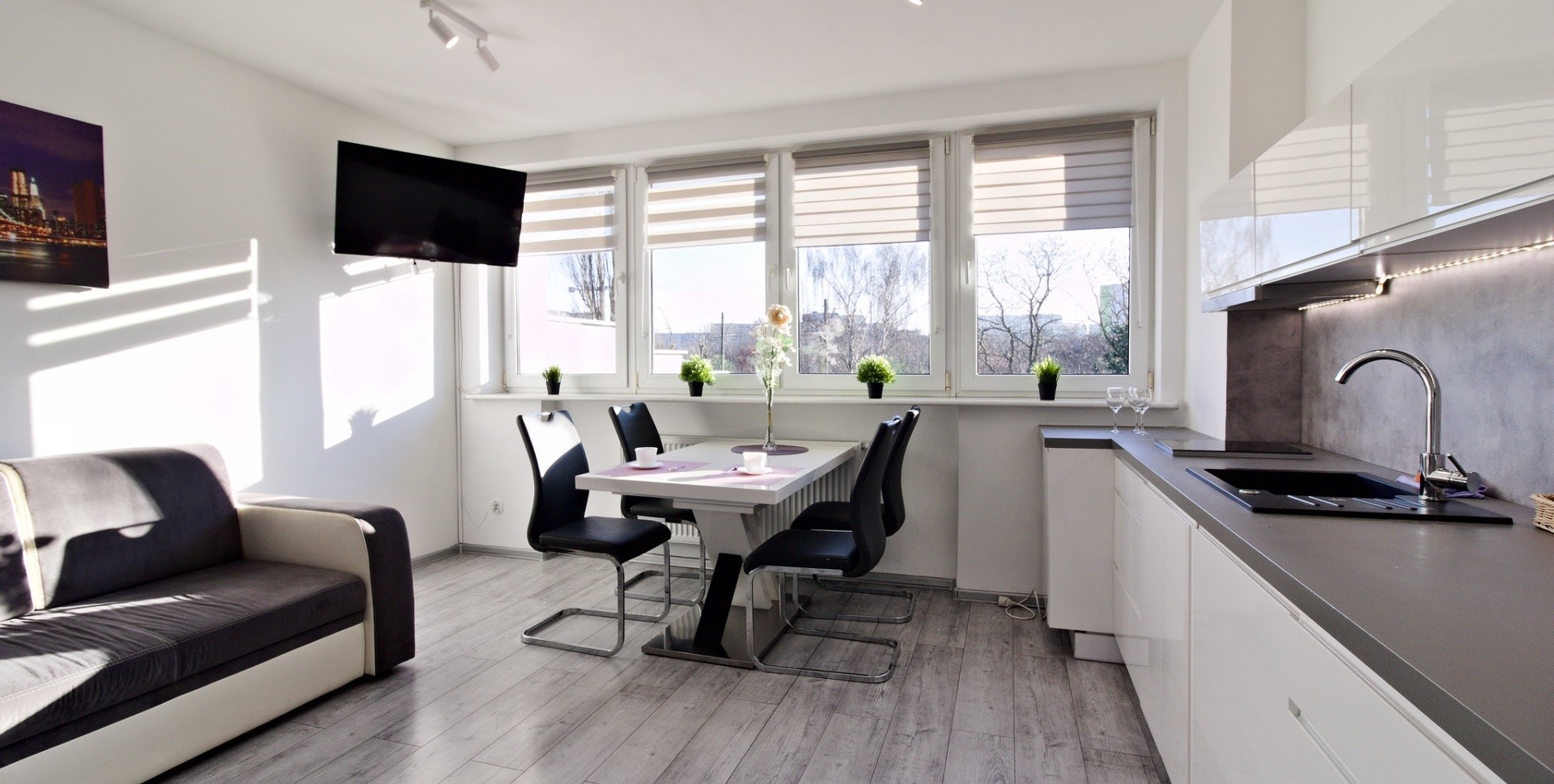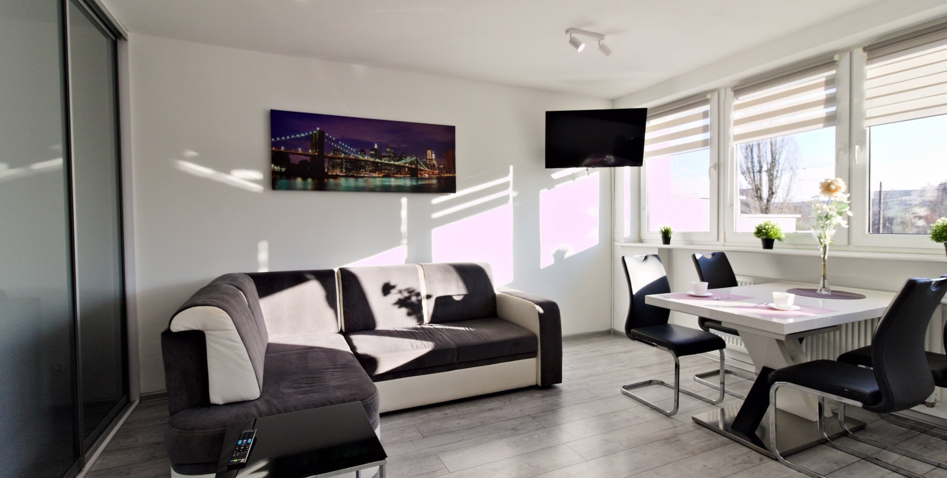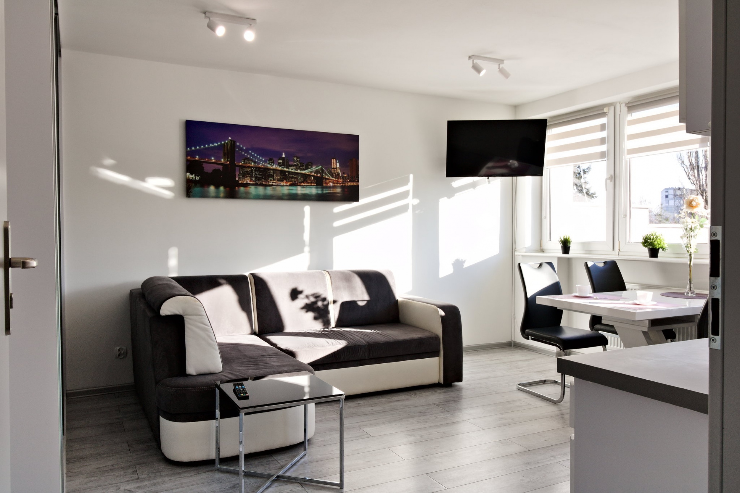 Apartament zlokalizowany jest w nowocześnie urządzonym budynku biurowo-usługowym. Na parterze znajduje się butik z modą damską (M.Choice). Apartament znajduje się na drugim piętrze, gdzie do dyspozycji gości oddaliśmy cały poziom. W skład apartamentu wchodzi osobna sypialnia z dużym łóżkiem podwójnym oraz pokój dzienny z aneksem.