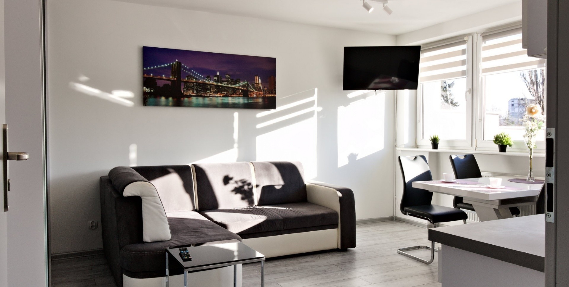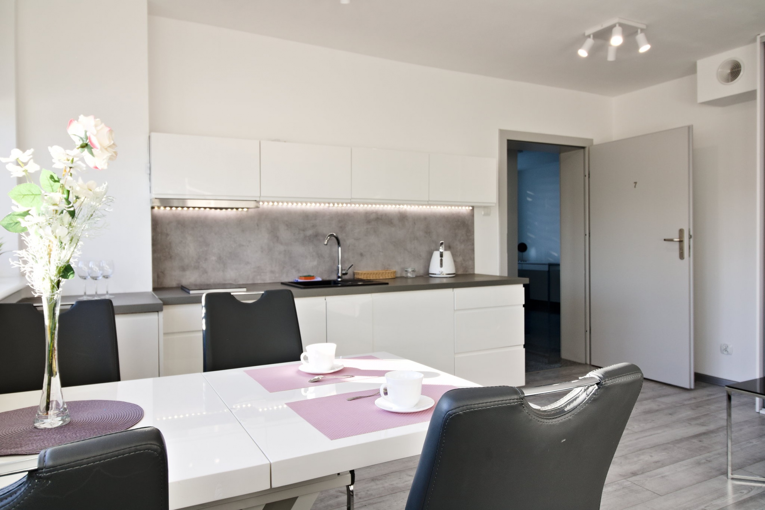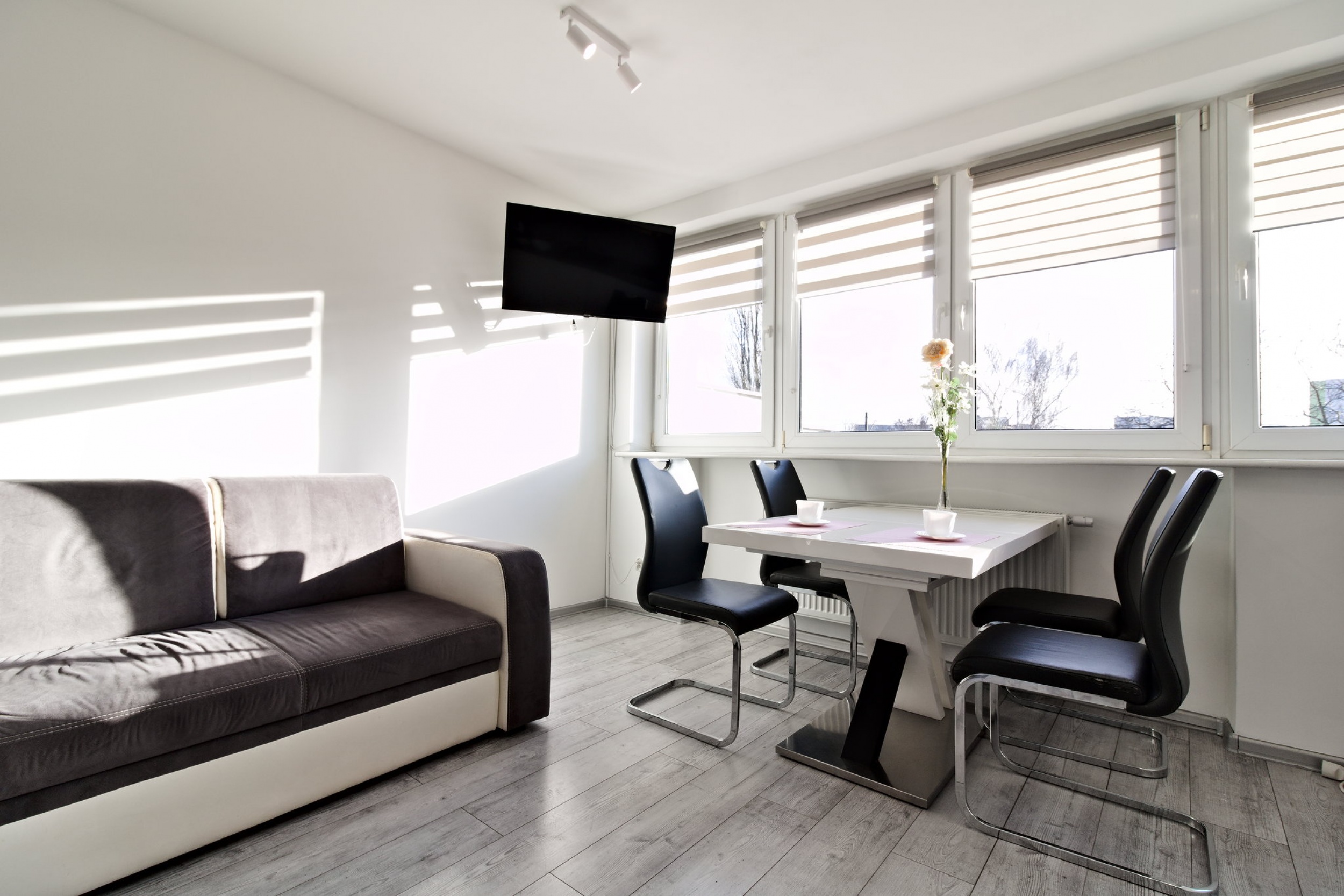 Apartament zlokalizowany jest w nowocześnie urządzonym budynku biurowo-usługowym. Na parterze znajduje się butik z modą damską (M.Choice). Apartament znajduje się na drugim piętrze, gdzie do dyspozycji gości oddaliśmy cały poziom. W skład apartamentu wchodzi osobna sypialnia z dużym łóżkiem podwójnym oraz pokój dzienny z aneksem.